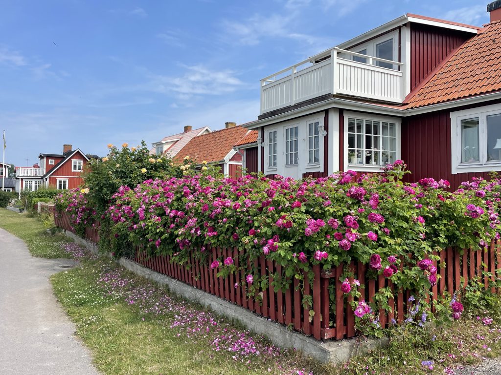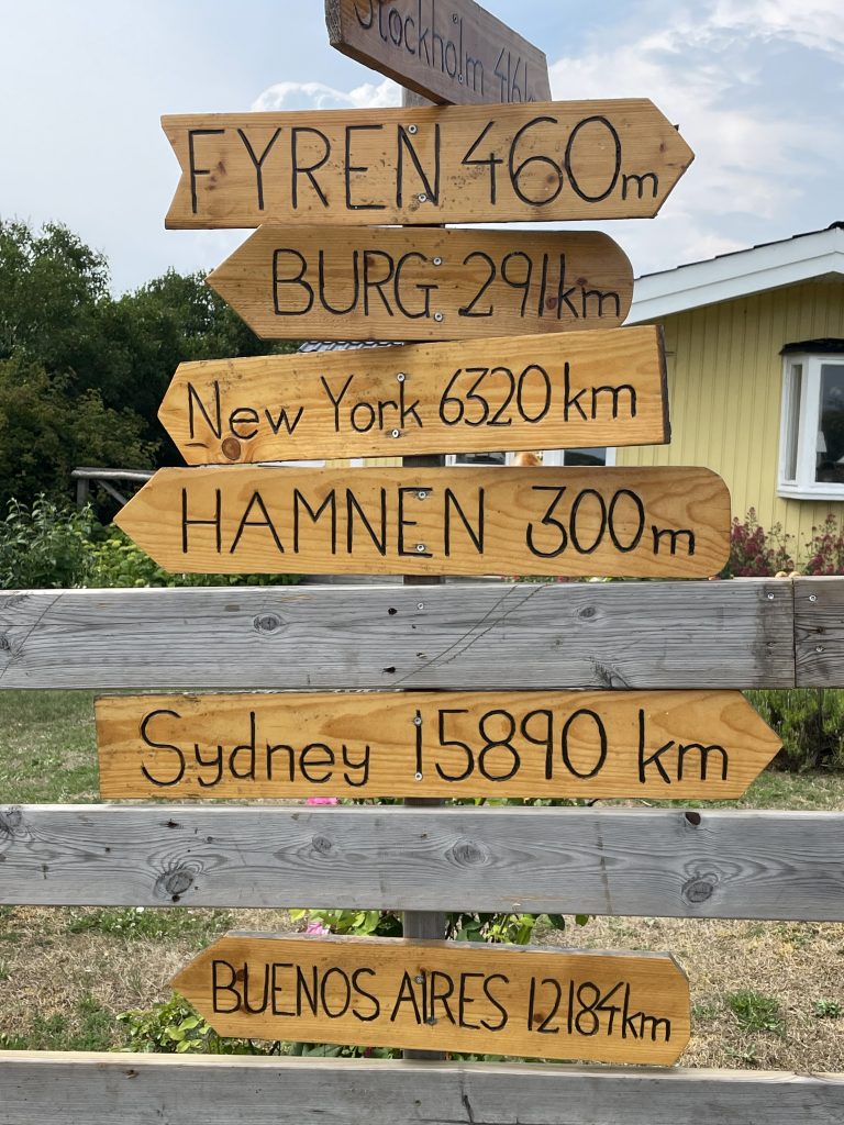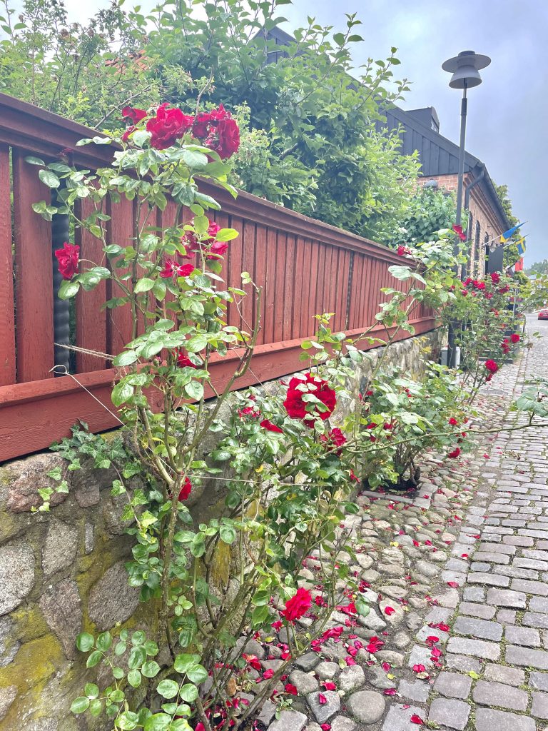 Über Nacht kommt heftig Wind auf – wie vorhergesagt – und kräftiger Regen – wie ebenfalls angekündigt. Über ganz Schweden liegt – wieder mal – ein großes Regengebiet. Wir sind ein bisschen skeptisch, ob die kleinen Fingerstege, die zum Festmachen vorgesehen sind, auch wirklich halten. Wir bekommen den Wind nämlich heftig direkt von der Seite. Wir verdoppeln wenigstens die am meisten beanspruchte Leine. Hilft dem Steg zwar nicht, beruhigt uns aber. Am Mittag hat es sich dann endlich ausgeregnet und ausgeblasen. Wir trauen uns nach draußen. Ein etwas längerer Spaziergang durch den Ort steht endlich an. Der Regen hatte aber auch was Gutes: das Schiff ist mal wieder gewaschen, von Salz, etwas Sand und Fliegenleichen befreit und wir haben wieder klare Sicht nach draußen.