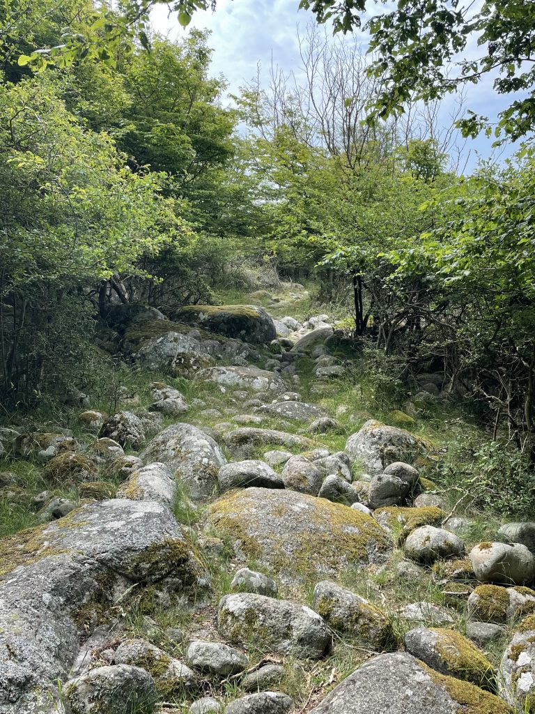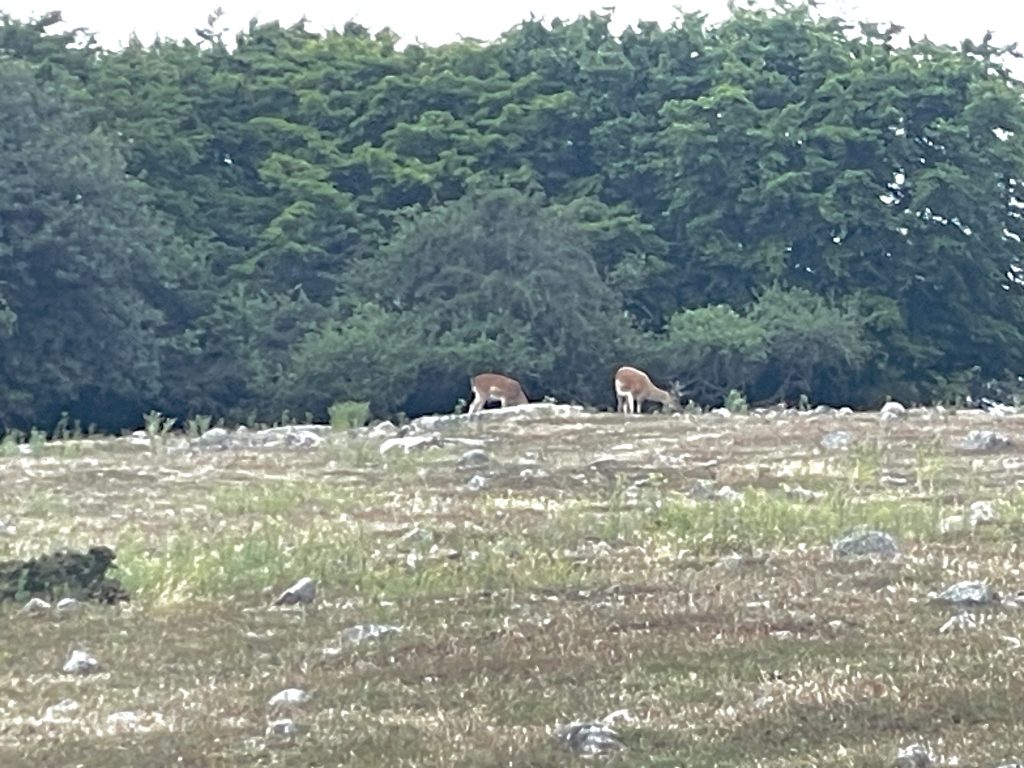 Für den nächsten Tag haben wir einen Hafentag eingeplant, denn erstens ist die Insel immer einen längeren Spaziergang wert, und zweitens ist ab Mittag wieder mit heftigem Südwind zu rechnen. Im Süden liegt aber Simrishamn, unser geplant nächster Stopp. Doch die Entfernung ist zu weit, um rechtzeitig vor dem Starkwind dort anzukommen, und die angesagte Windrichtung bedeutet zudem ein Aufkreuzen zum Ziel. Aufkreuzen verlängert aber die Strecke noch mehr und damit ist Simrishamn für heute raus aus der Verlosung. Also gut anbinden, noch zusätzliche Leinen ausbringen… und spazieren gehen. Der Weg führt die Küste entlang durch dichten Bewuchs und über Geröllfelder und mal wieder hoch zum Leuchtturm. Und immer schön aufpassen, dass man dem reichlich auf der Insel lebenden Damwild nicht in die Quere kommt.