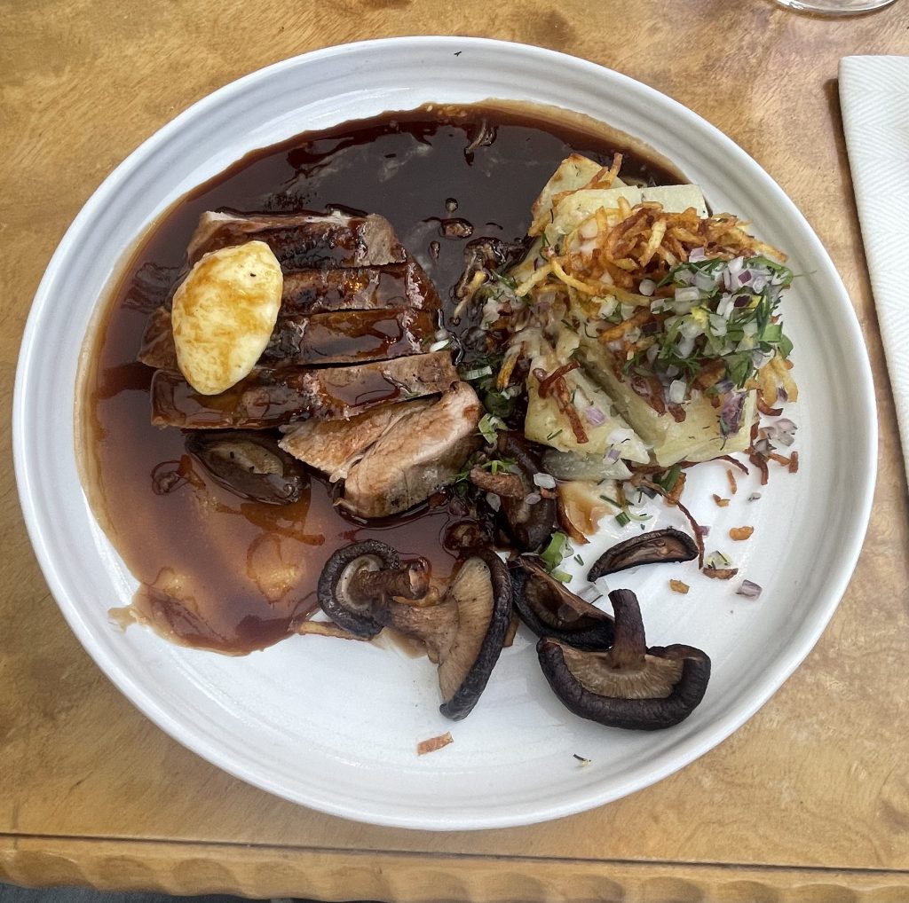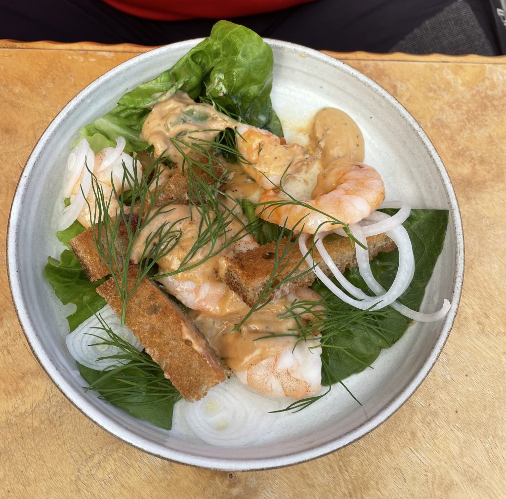 Auf der Promenade entlang des Flusslaufs ist der Bär los… kein Wunder an diesem sonnigen, sommerlichen samstäglichen Spätnachmittag. Es reihen sich Restaurants, Eisbuden und noch der eine oder andere Bekleidungs-Shop aneinander und alle sind gut besucht 🍦👚. Doch wir haben Glück und ergattern einen schönen Platz zum „Dinner mit Kellner“. Auf dem Heimweg wundern wir uns über eine Menschenansammlung, die offensichtlich auf eine Mini-Fähre wartet. Diese fungiert als Shuttle zu einem auf der anderen Fluss-Seite liegenden beliebten Restaurant und einer trubeligen Bar. Doch beide Locations sind voll… es stehen schon Menschen davor und warten auf einen Platz. Das sehen wir gut von “unserer“ Fluss-Seite aus. Wieso will man dann noch rüber? Man muss nicht alles verstehen. Zurück an Bord steht für uns noch der erneute Aufbau unserer Kuchenbude an: heftiger Regen ist vorhergesagt.