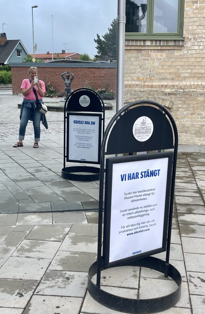 Der Ort ist wirklich nett – auch bei bedecktem Wetter, denn leider ist der Kampf zwischen Sonne und Wolkendecke noch in vollem Gang. Der mittelalterliche Stadtkern zeigt sich mit hübsch hergerichteten Häuschen und der 900 Jahre alte Sankt-Maria-Kirche. Am Flussufer stehen zudem viele sehenswerte Anwesen – man kann deutlich schlechter wohnen. Und mittendrin die Produktionsstätte von ABSOLUT-VODKA: große Werkhallen und die historische Fabrikantenvilla des Firmengründers Lars Olsson Smith. Leider ist eine Besichtigung aktuell nicht möglich: kein Personal für Führungen. 🤷♀️🤷♂️ Dann müssen wir wohl irgendwann nochmal wiederkommen.