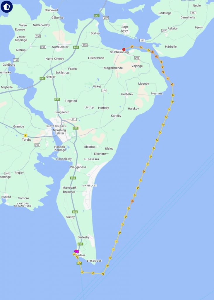Wir genießen eine entspannte Segelzeit bis zum Kurswechsel in den Grønsund hinein. Kurz vorher holen wir die Segel ein, denn der Wind wird schwächer und bringt uns nicht mehr so richtig voran. Der Motor muss mithelfen und so motoren wir das letzte kurze Stück bis zum Hafen von Stubbekøbing. Die Strömung im Sund ist heute eindeutig auf unserer Seite – der viele kräftige Ostwind der Tage zuvor hat das Wasser ordentlich in Bewegung gebracht. Wir gleiten mühelos durch den Sund und es fühlt sich ein wenig so an, als würden wir vom Strom getragen; das leise Glucksen am Heck und die zügige Fahrt machen richtig gute Laune. Und auch einige Schweinswale finden die Strömung und das tiefe Wasser im Grønsund herrlich. Wir kommen entspannt und fast wie von selbst im Hafen von Stubbekøbing an.