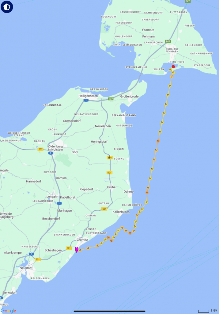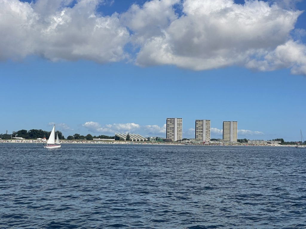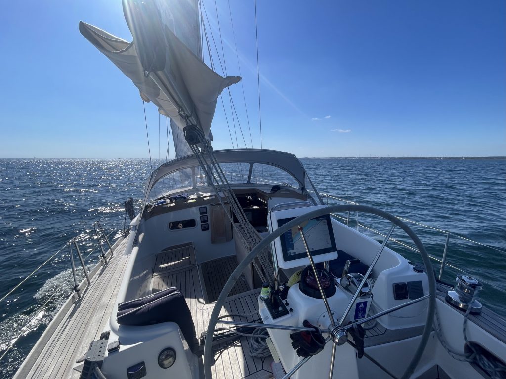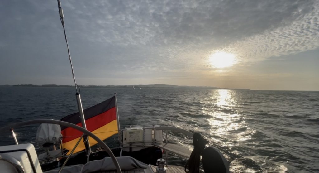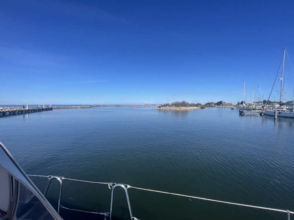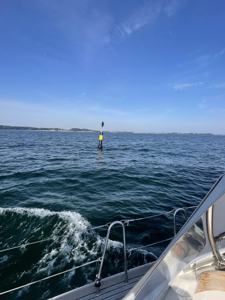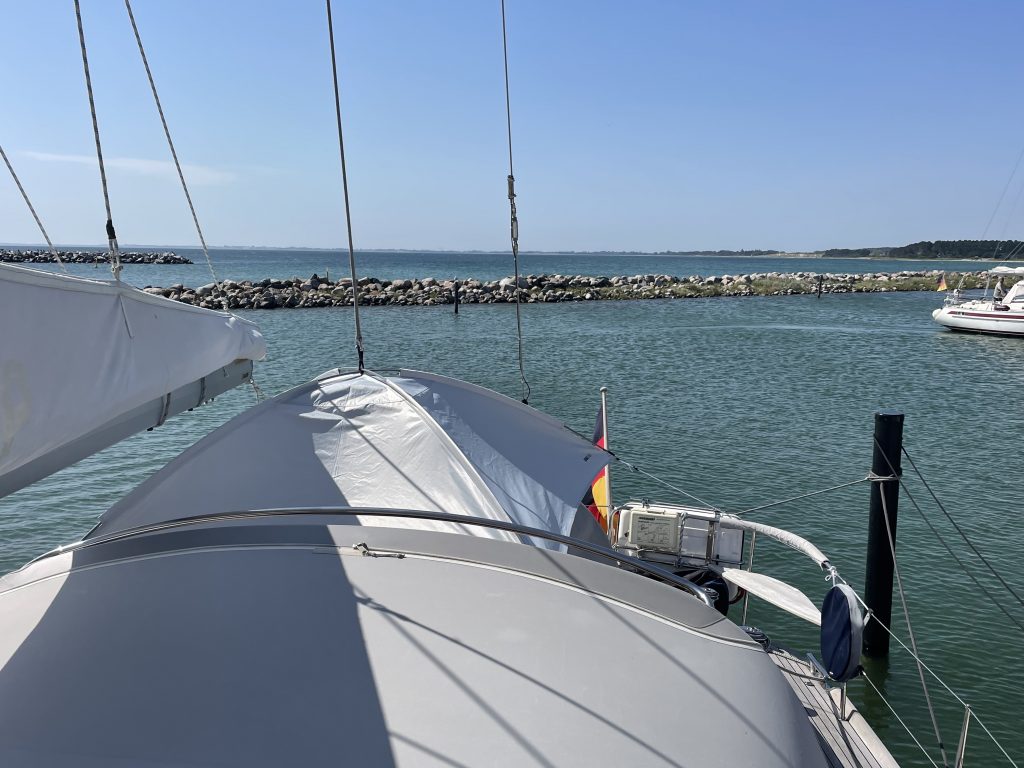 Am Dienstag, den 19.08.2025, wird seit langem mal etwas länger geschlafen. Der Liegeplatz im nächsten Hafen, unserem Heimathafen Grömitz, ist uns sicher und so können wir dort auch gemütlich erst am Nachmittag einlaufen. Das Ablegen mit dem bewährten Eindampfen in eine Spring hat hervorragend geklappt und schnell setzen wir die Segel für die letzte Etappe des diesjährigen längeren – eher doch kürzeren – Segeltörns.