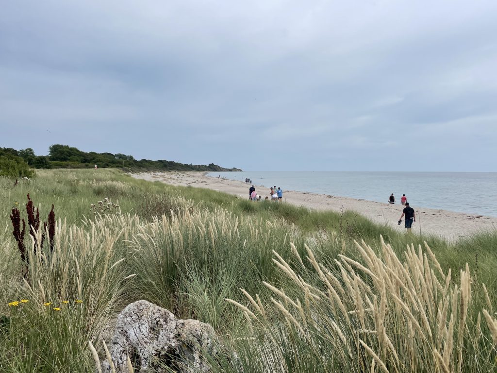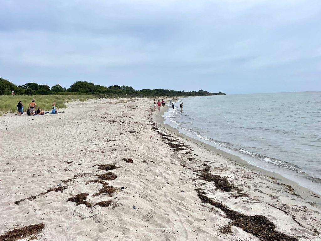 Wir bleiben einen weiteren Tag in Klintholm und erwandern uns die nähere Umgebung: am Fischereihafen vorbei, wo (endlich) die Mole erneuert wird und zum Strand. Dieser ist nicht ganz so schön, wie der von Skanör, aber wir sind ja eh keine Am-Strand-Lieger. Der Wind kommt zwar aktuell aus einer für uns passenden Richtung, aber mal wieder viel zu stark und vor allem sehr böig. Doch das Wetter ist sonst herrlich. Der starke Ostwind hat offensichtlich die dänischen Wolken vertrieben und den schwedischen Sommer zu uns herüber geblasen. Das gefällt uns!
