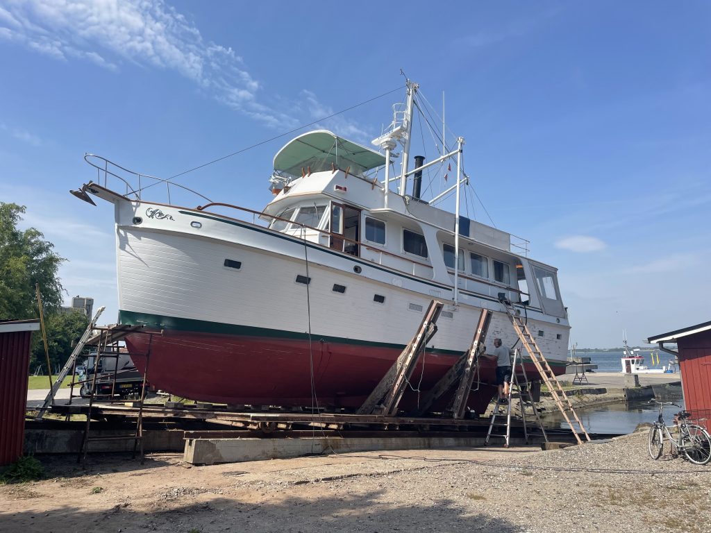Im örtlichen Marineshop fragen wir natürlich auch nach. Sie können die Batterien, wie alle anderen, die wir in Deutschland angefragt haben, bestellen und hätten sie morgen hier. Da die Windvorhersage uns (aktuell) eh mindestens einen Hafentag vorgibt, wäre das nicht das Problem. Doch der Preis… 😵💫🤢… ist fast doppelt so hoch wie in Deutschland. Ups. Bei zwei Batterien kommt da schon ein ordentlicher Betrag zusammen. Das muss dann doch nicht sein. Da vertagen wir eine Fahrt durch das Smålandsfahrwasser und die weiteren Besuche kleiner netter Häfen lieber und begeben uns gemütlich auf die Heimreise. Ist in diesem Jahr ja eh alles irgendwie vermurkst, da macht ein früheres Reiseende den Kohl auch nicht mehr fett. Aber schade ist’s schon 😥. Doch vielleicht fahren wir nach dem Tausch der Batterien einfach nochmal irgendwohin. Dann sollten zumindest die Ferien überall zu Ende sein und die Häfen leerer.