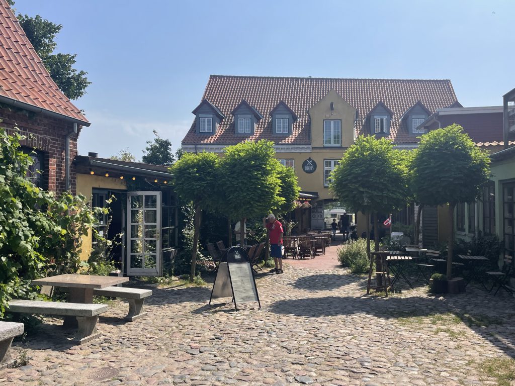 Also mal eine kleine Spazierfahrt zu dem im Mittelalter durch Heringsfang sehr wohlhabenden Stadt. Von hier wurde zur damaligen Zeit etwa ein Drittel des gesamten dänisches Heringsbedarfs gedeckt. Stege besticht noch heute durch den Charme eines mittelalterlichen Städtchens. Wir schlendern bei strahlender Sonne durch die kopfsteingepflasterte Einkaufsstraße und entdecken kleine Läden, Cafés und gemütliche Innenhöfe, in denen sich das dänische Lebensgefühl wunderbar erleben lässt. Eine Mischung aus beschaulicher Gemütlichkeit und Tradition. Besonders einladend wirkt die kleine Brauerei auf uns, in der wir das örtliche Bier genießen. Das ist Dänemark.