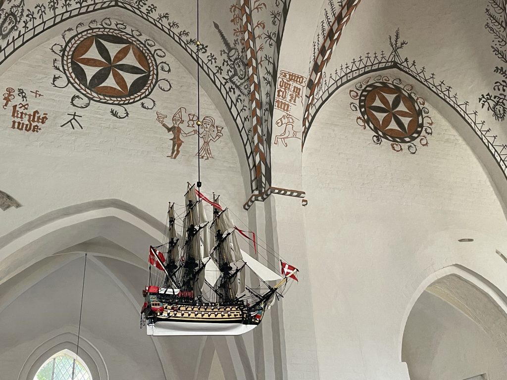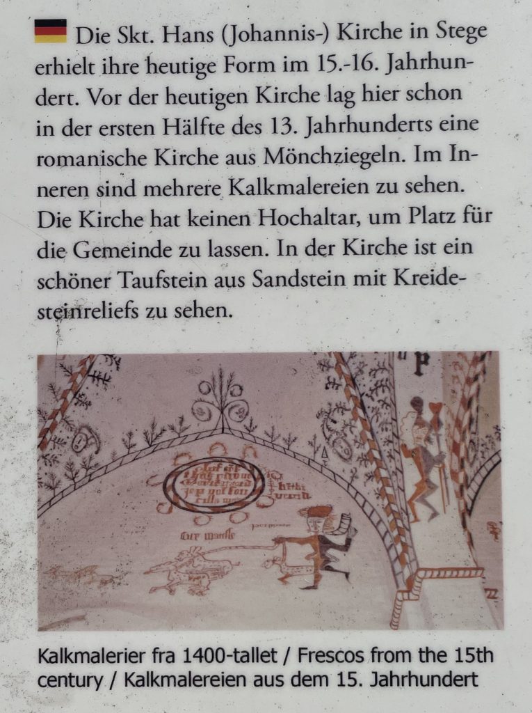 Dann noch ein kurzer Besuch der eindrucksvollen St. Hans Kirche, deren Ursprung auf einen romanischen Bau aus dem 12. Jahrhundert zurückreicht. 1460-1525 wurde sie im gotischen Stil erweitert und besticht durch kunstvolle Fresken im Chorgewölbe.